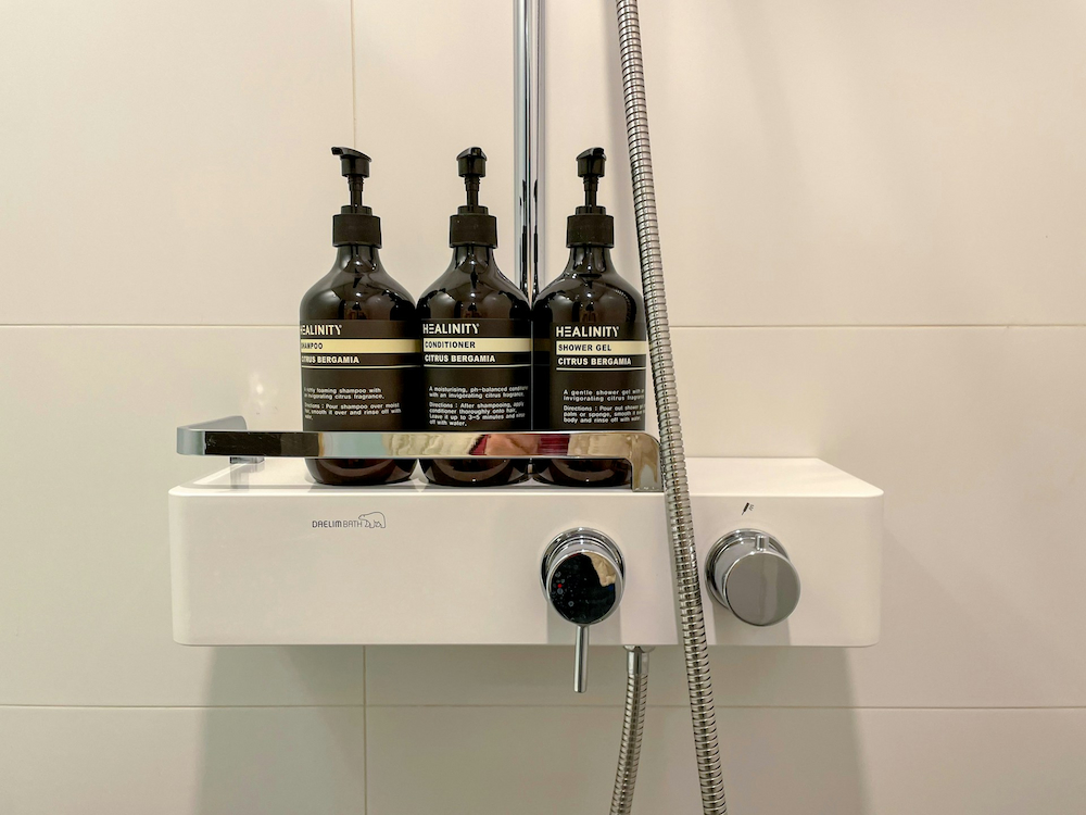 個別ブースタイプのシャワーとアメニティ完備。タオルやシャンプーも貸出しています。